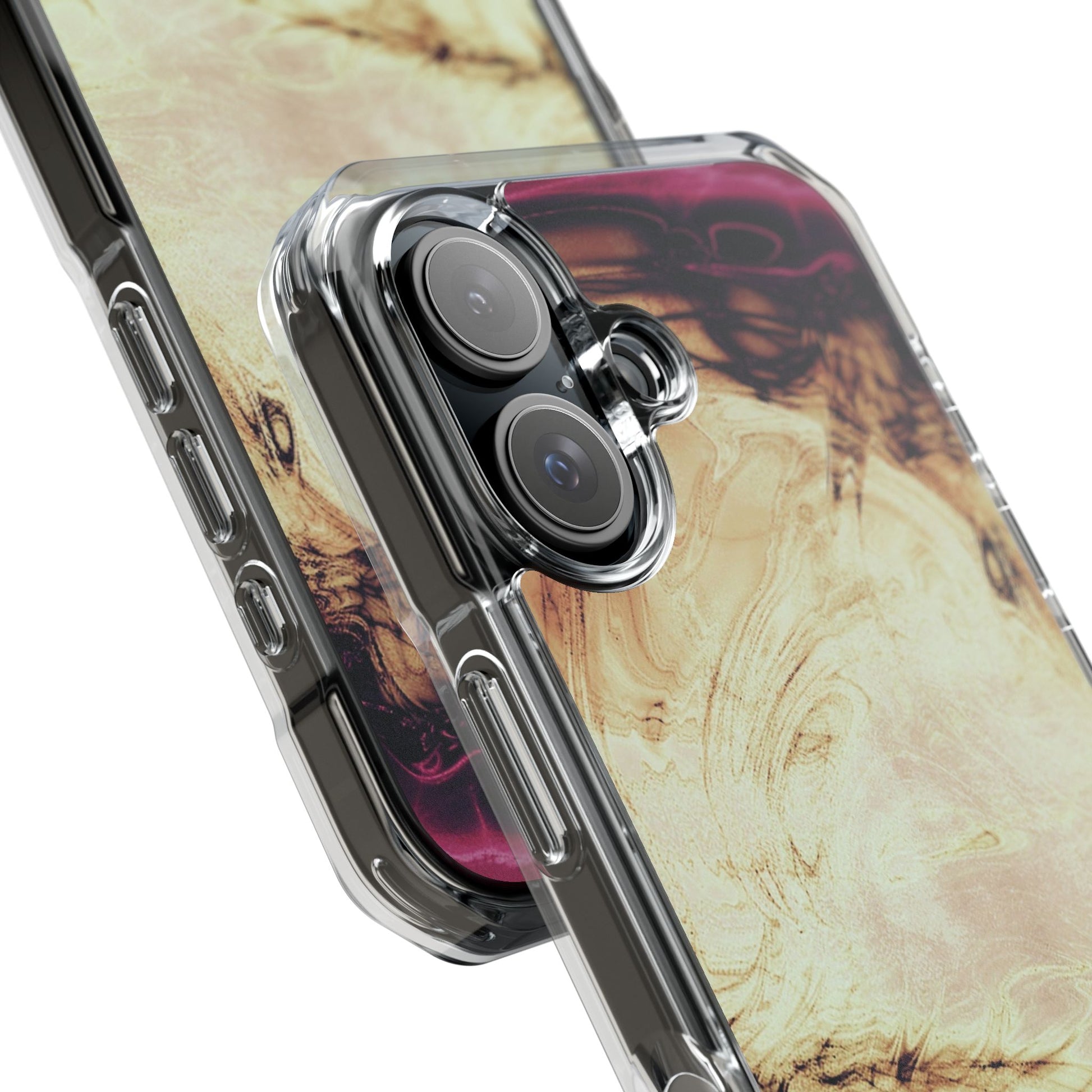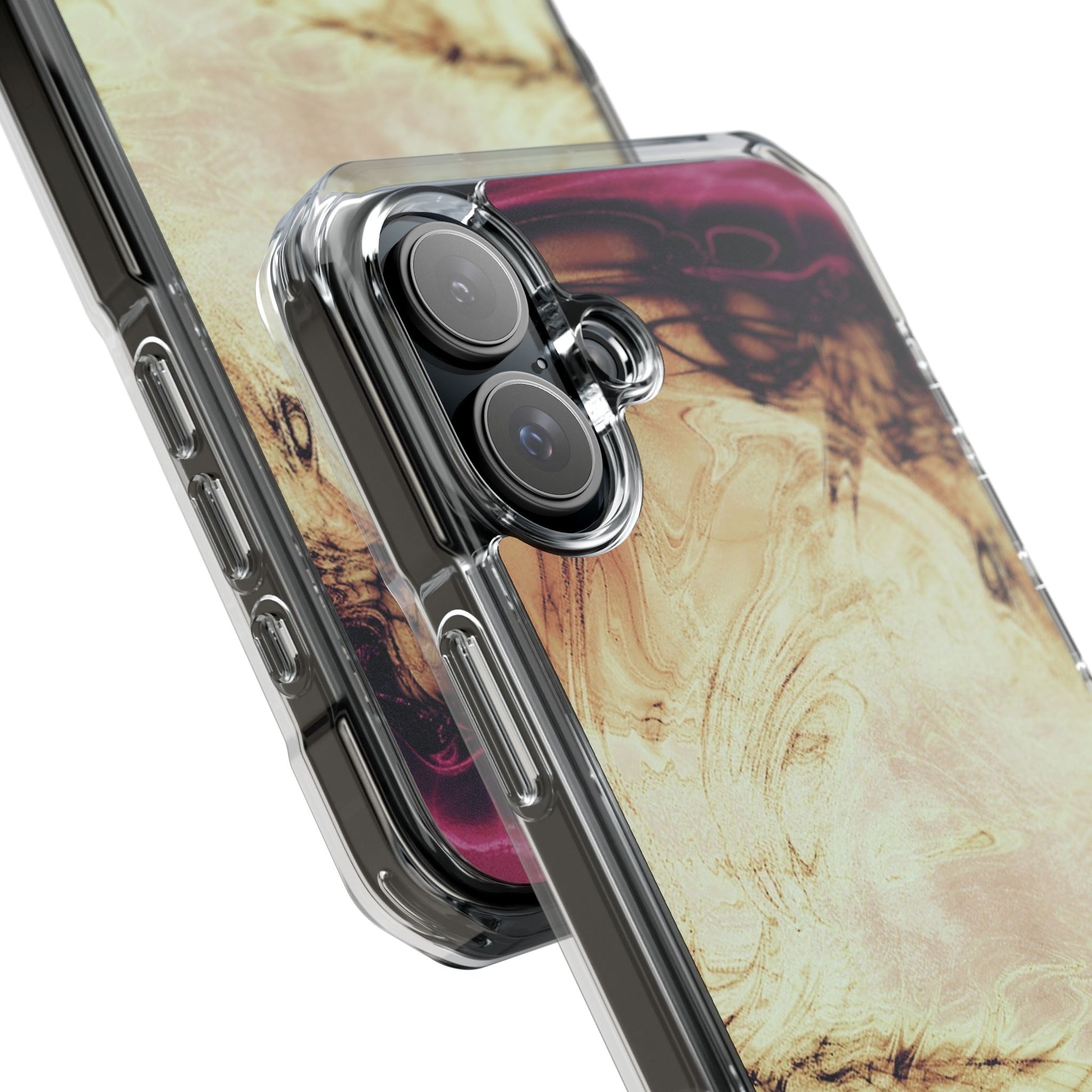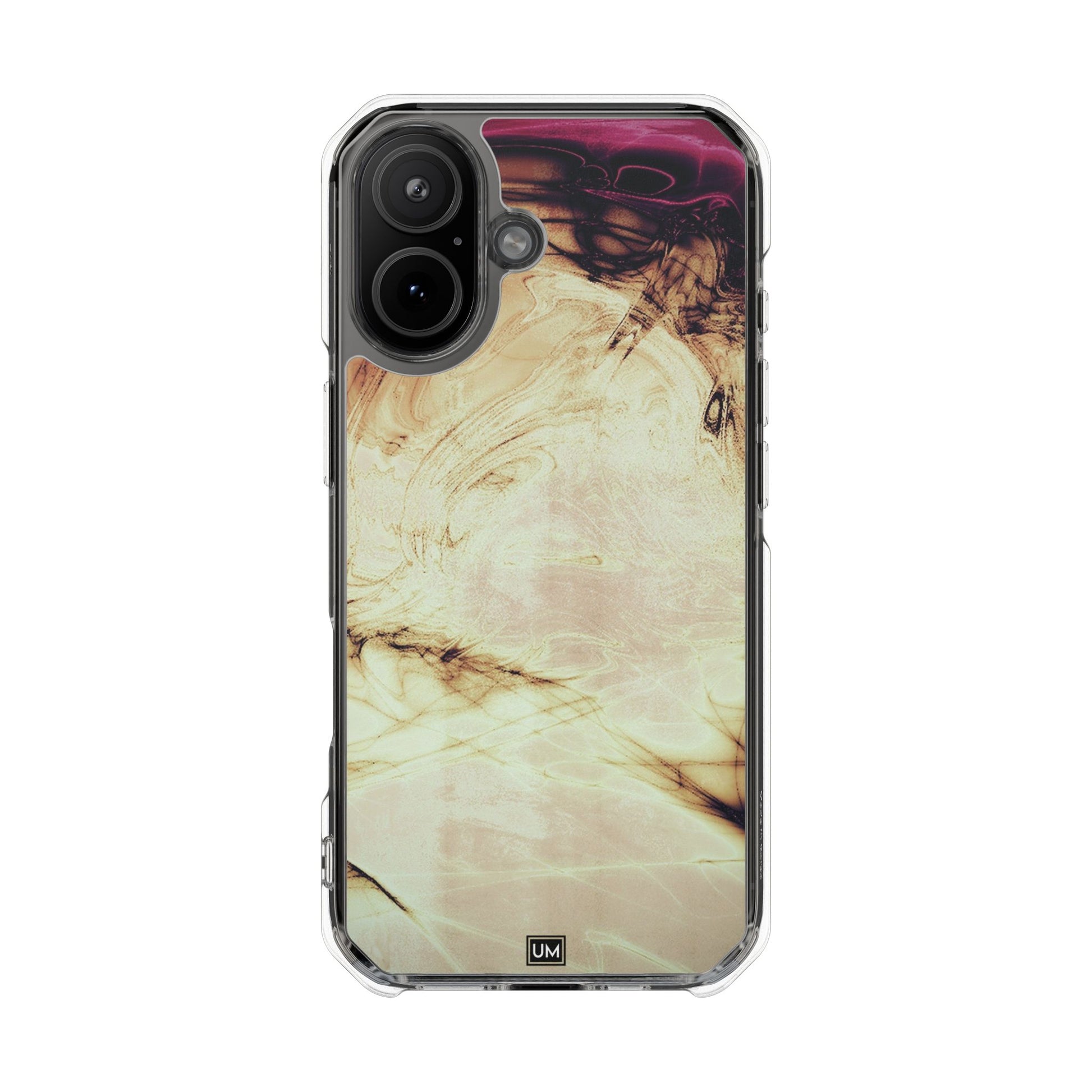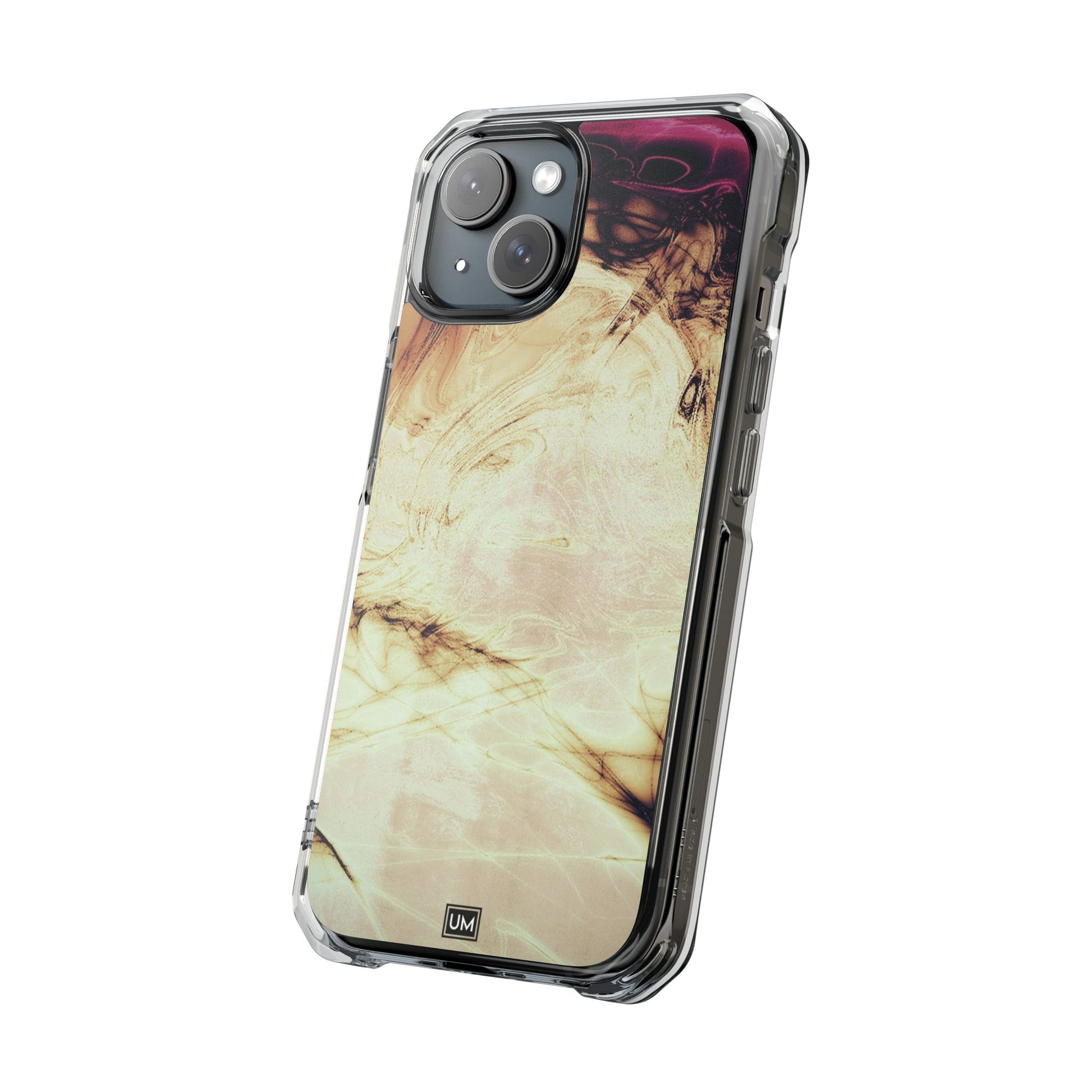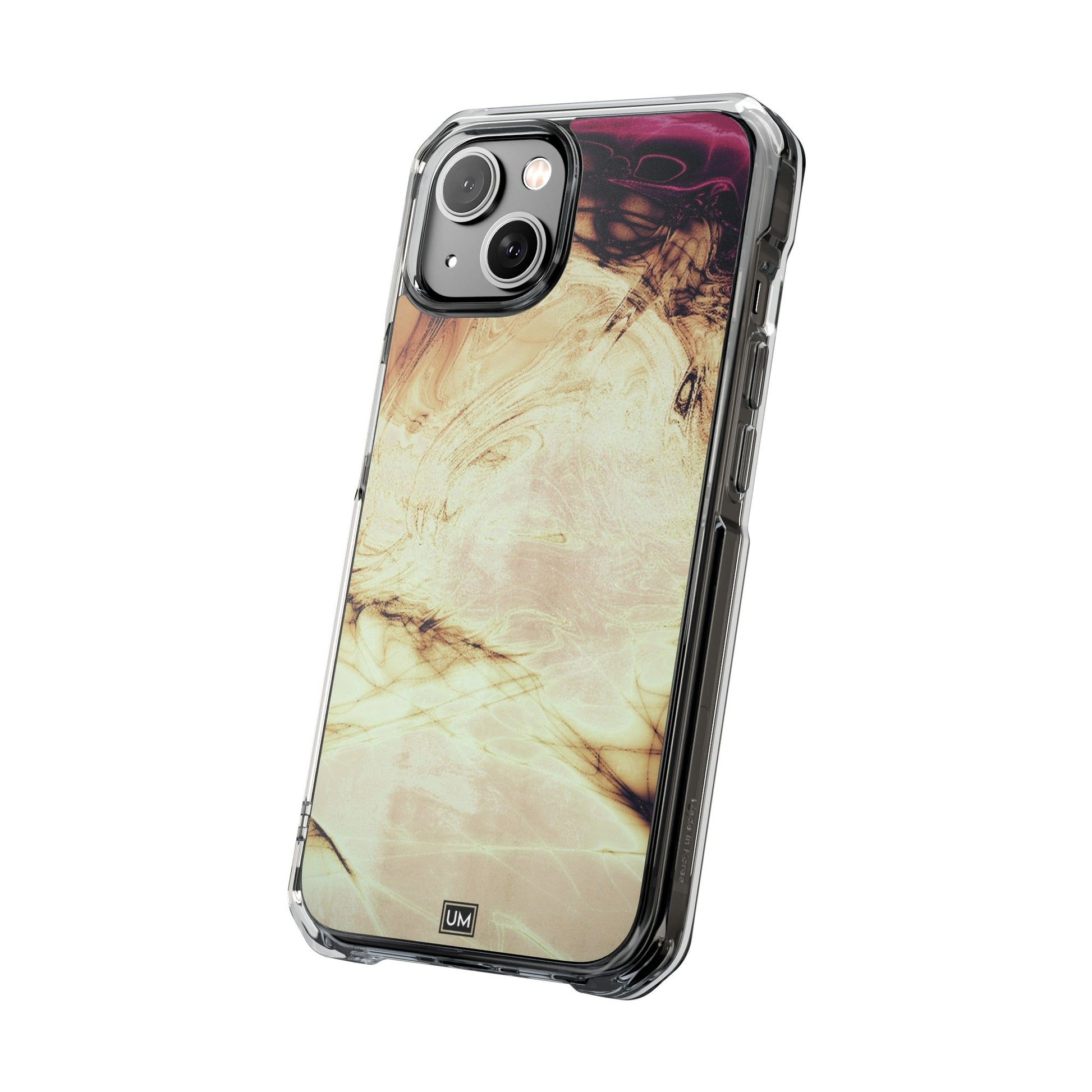 Protect your iPhone 14, iPhone 15, or iPhone 16 with this MagSafe®-compatible impact case, crafted from durable polycarbonate and flexible TPU. This elegant and subtle case features an embedded MagSafe®-compatible module for seamless accessory compatibility, air-cushioned bumper corners for superior drop protection, and holes for straps or charms, ensuring both style and functionality.
